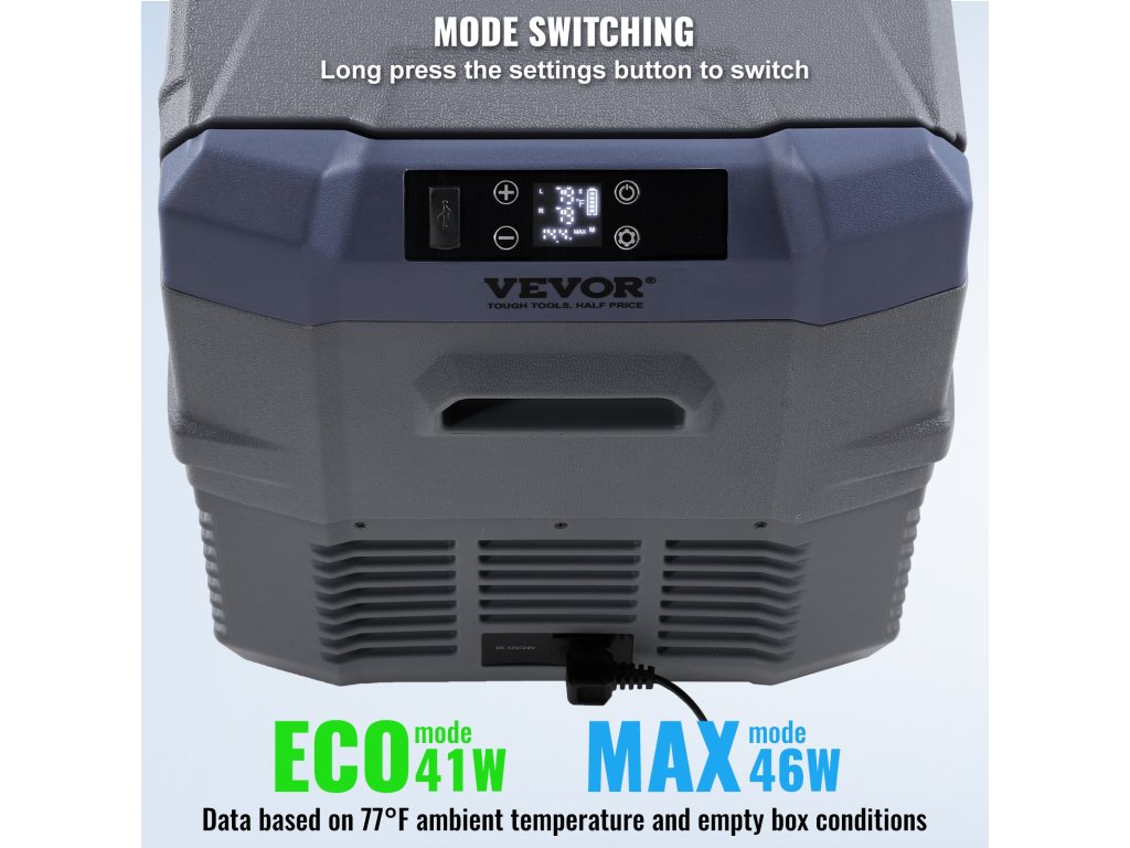 - Tichá a energeticky účinná: Chladnička pracuje s hlučností ≤ 45 dB, což vám zajistí dobrý spánek po dlouhých jízdách. Prostřednictvím dotykového LCD displeje si také můžete vybrat mezi režimy ECO a Max. V úsporném režimu ECO je provozní výkon této přenosné chladničky nižší než 41 W. I při provozu v režimu MAX (46W) jeho inteligentní cirkulace spotřebuje méně než 1 kWh/den.