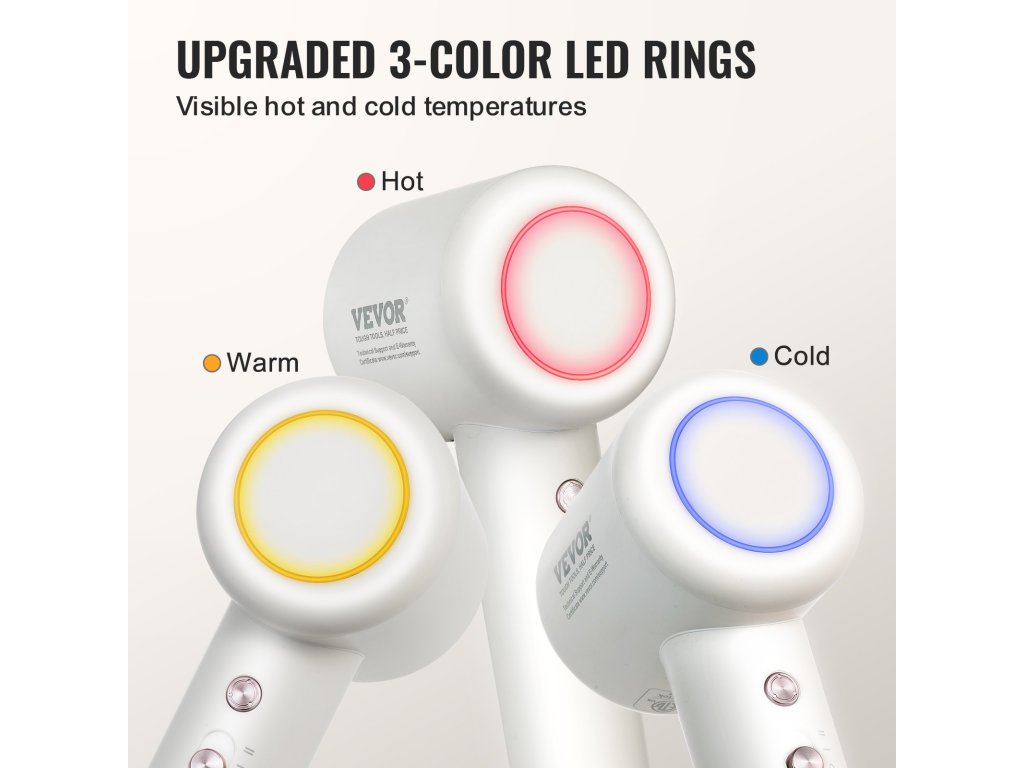 - Personalizovaný zážitek ze sušení vlasů: Náš negativní iontový fén nabízí přizpůsobitelné možnosti se 3 nastaveními teploty, 2 rychlostmi proudění vzduchu, přepínačem cyklování studeného a horkého větru a všestrannými nástavci: 360° otočná magnetická tryska a difuzér. Díky 3barevným LED světelným kroužkům je nastavení teploty jasně viditelné na první pohled - snadno se přizpůsobí struktuře a stylu vašich vlasů.