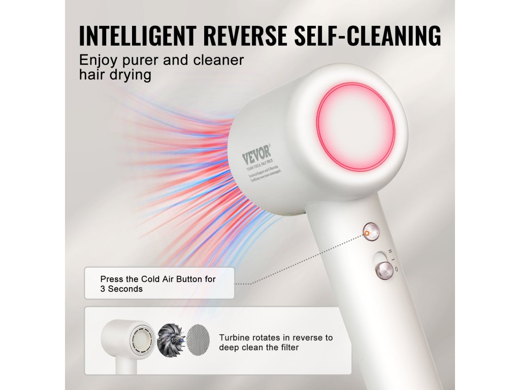 Vysokorychlostní vysoušeč vlasů VEVOR 105 000 ot./min. 200 milionů negativních iontů 3 teploty a 2 rychlosti