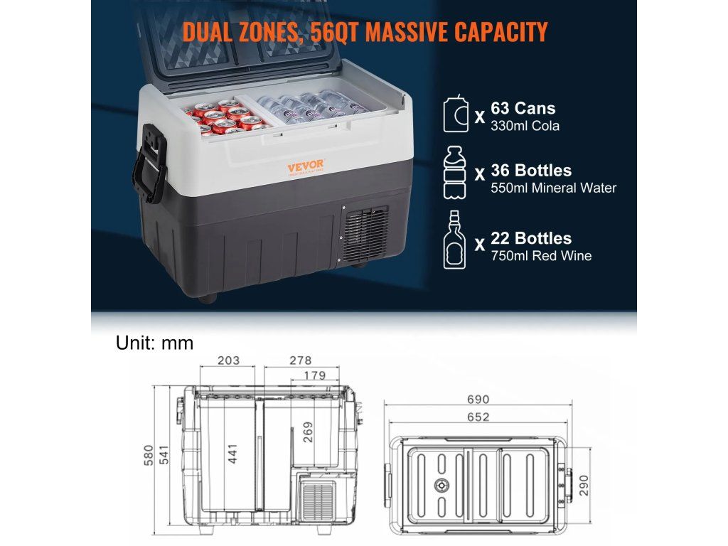 - Dvouzónová regulace teploty: Dvě zóny lze přizpůsobit pro účely izolace nebo chlazení a teplotu lze nastavit v rozmezí -4 °F až 50 °F podle vašich specifických potřeb. Díky velkorysé celkové kapacitě 58 QT můžete snadno chladit a skladovat sortiment nápojů, ovoce, masa, mořských plodů a dalších produktů, abyste měli vše, co potřebujete pro svá každodenní dobrodružství.