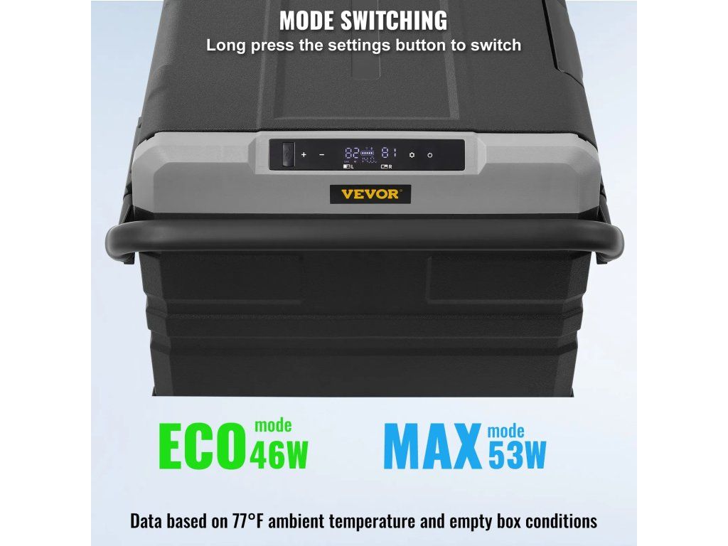 - Tichý a energeticky úsporný: Lednička pracuje s hlučností ≤ 45 dB, což vám zajistí dobrý spánek i po dlouhých cestách. Na dotykovém LCD displeji si také můžete vybrat mezi režimy ECO a Max. V úsporném režimu ECO je provozní výkon této přenosné lednice nižší než 46 W. I při provozu v režimu MAX (53 W) spotřebovává její inteligentní cirkulace méně než 1 kWh/den.
