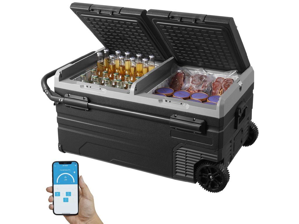Kompresorová terénní dvouzónová autochladnička 95L s mrazákem 230/24/12V -20°C Bluetooth, USB
