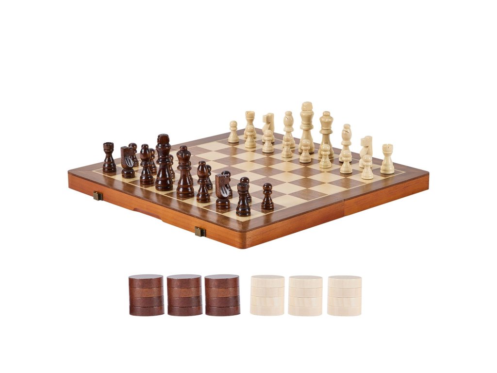 Magnetická dřevěná šachová sada 2v1 + dáma