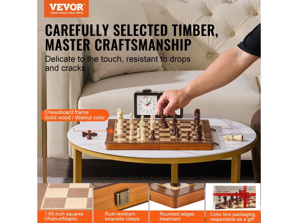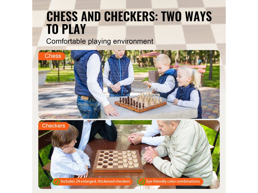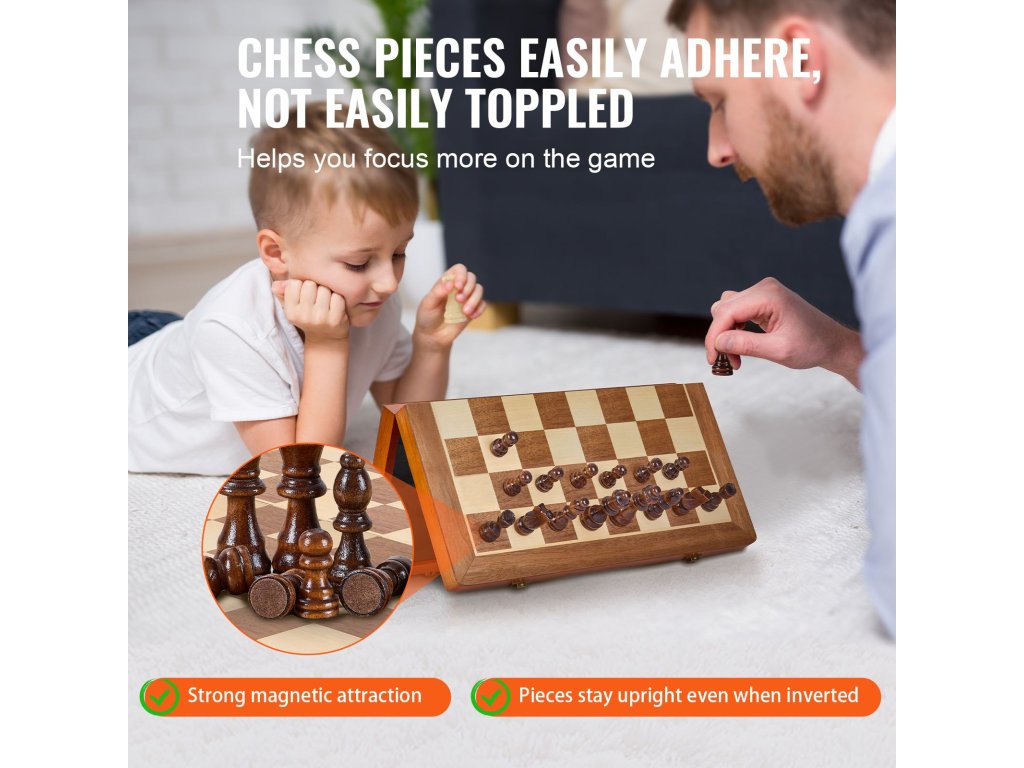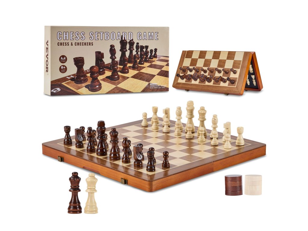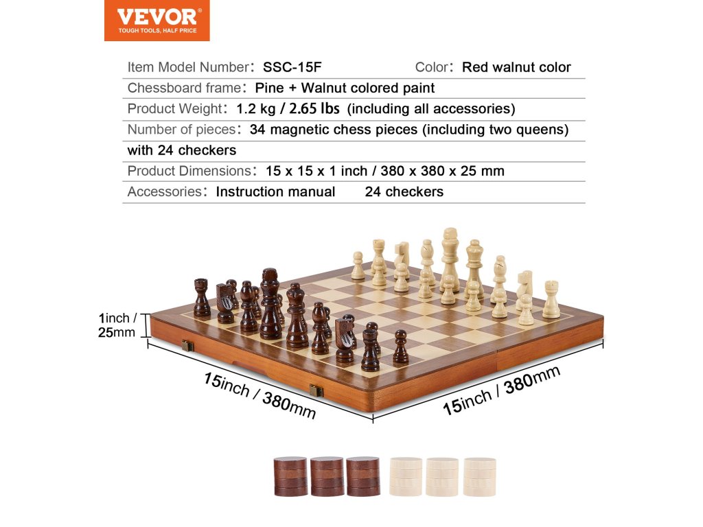 Magnetická dřevěná šachová sada VEVOR, 15palcová šachová šachová sada 2v1, skládací šachové stolní hry pro dospělé, 2 královny přenosná cestovní dárková šachová sada pro turnajové profesionální začátečníky