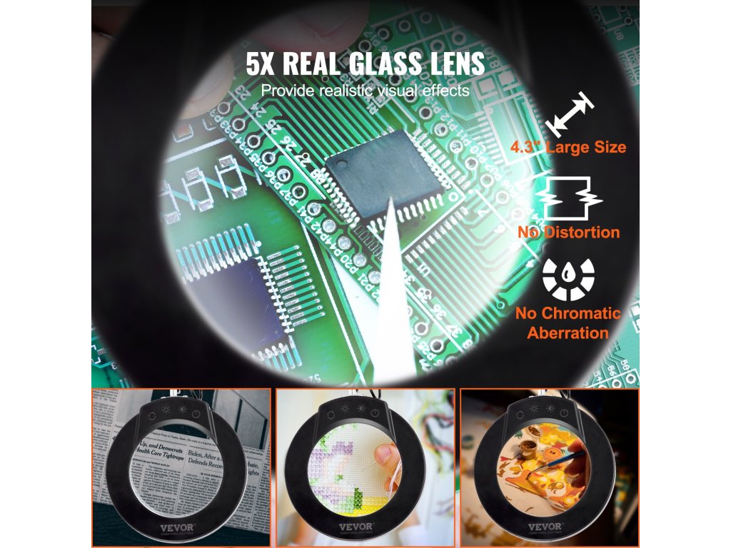 Lupa VEVOR s 5násobnou světelnou lupou 4,3" čočka 5 barevných režimů