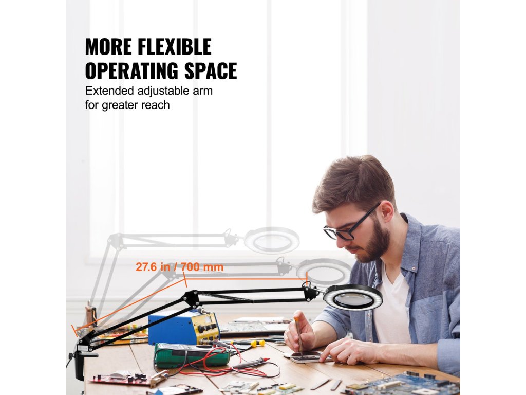- Bezpečná protiskluzová svorka: Udržujte věci v klidu a mějte je pod kontrolou! Protiskluzová svorka naší lupy zajišťuje, že během používání zůstane pevně na svém místě, poskytuje zvýšenou bezpečnost a klid. Jeho rozšířený design umožňuje použití na širších plochách a vytváří ideální nastavení pro vaši práci, studium, čtení nebo relaxaci.