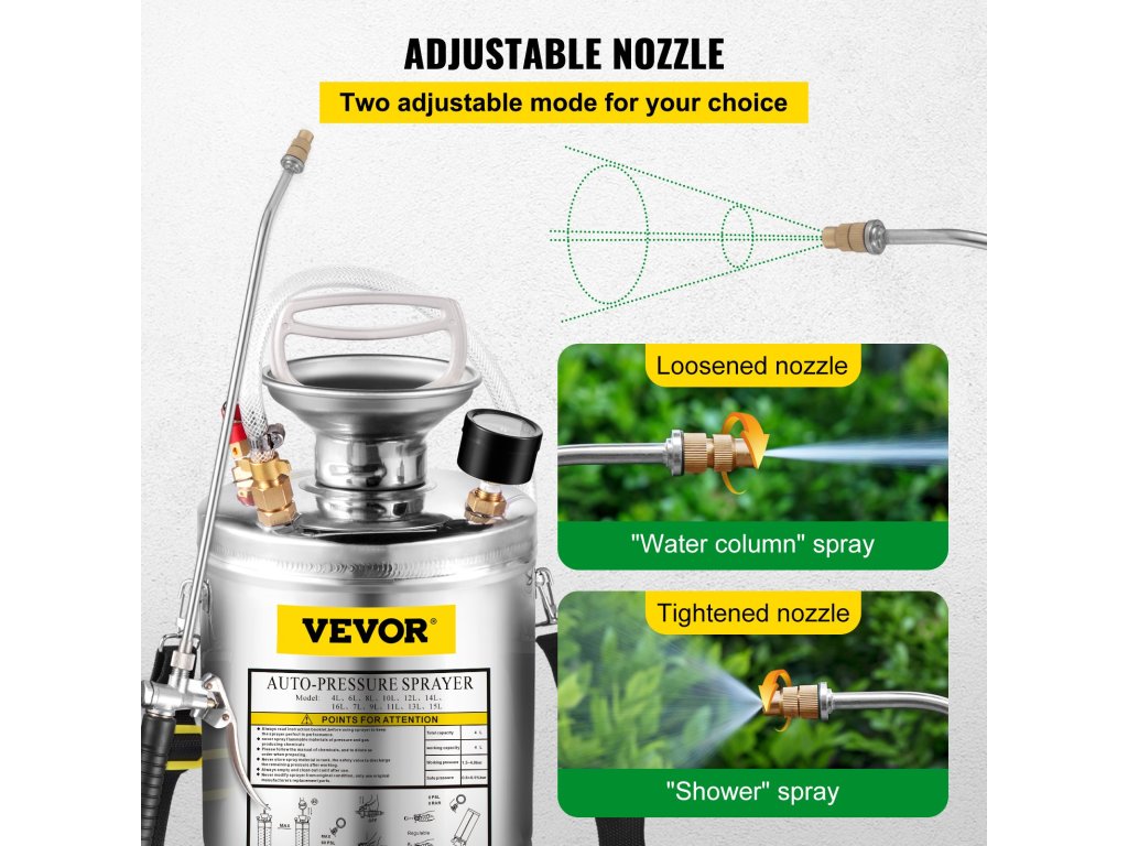 - Více aplikací: Náš ruční postřikovač je ideální pro zahradnictví, trávníky, dvorky, vnitřní a venkovní postřiky, automobilový průmysl, všeobecné čištění, koupání domácích zvířat a mnoho dalších aplikací. Je vhodný i k dezinfekci.