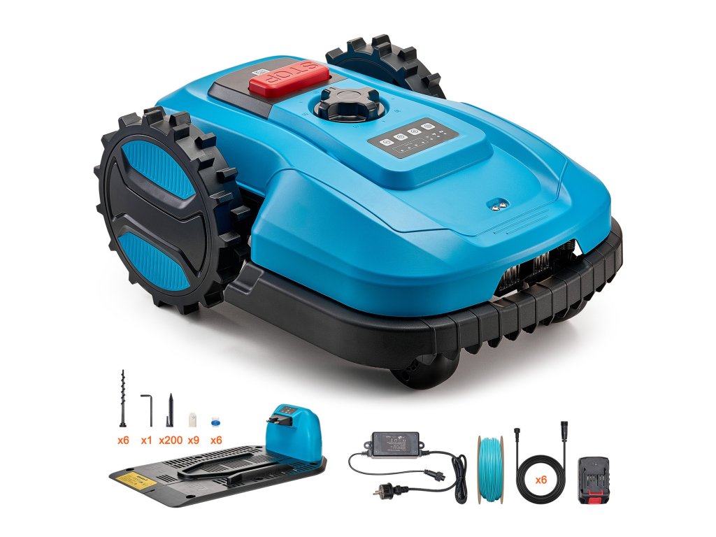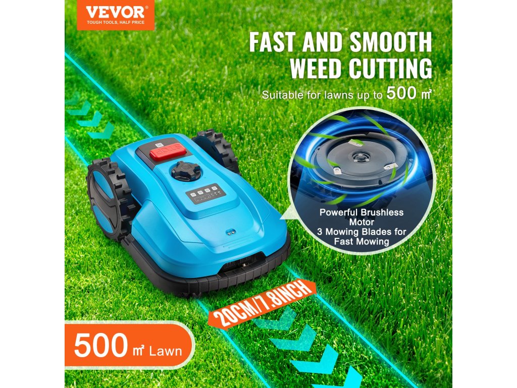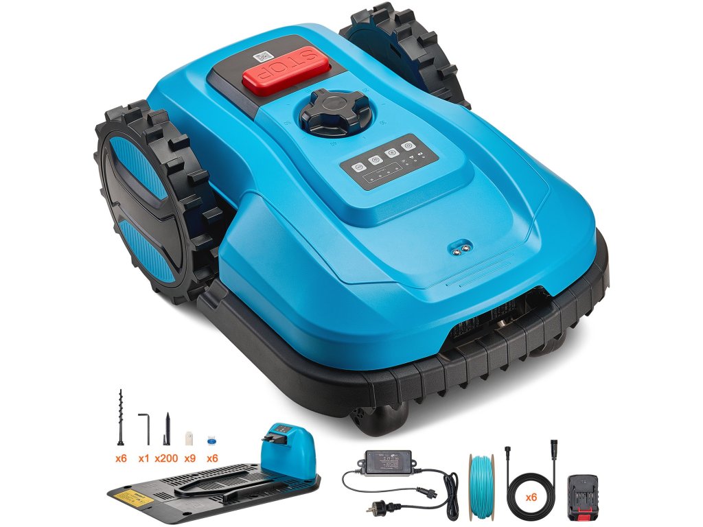 Robotická sekačka na trávu VEVOR pro 500 qm trávníku 20V 4Ah APP Control Blue