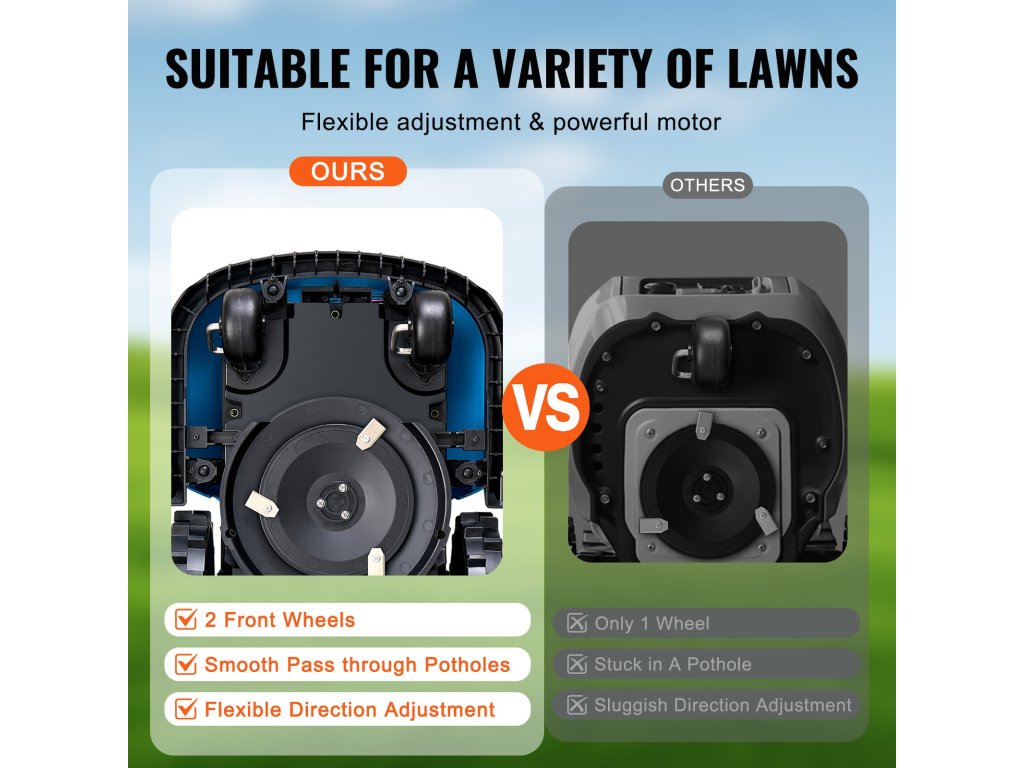 - Vysoce citlivé senzory: Naše robotická sekačka obsahuje vysoce citlivé senzory kolize, které se automaticky vyhýbají překážkám, zabraňují poškození objektů a zajišťují bezpečnost a spolehlivost. Sekačka je vybavena dvojitými otočnými koly pro lepší manévrovatelnost, umožňující přesné nastavení směru a minimalizaci vynechaných ploch nebo opakovaného sečení.