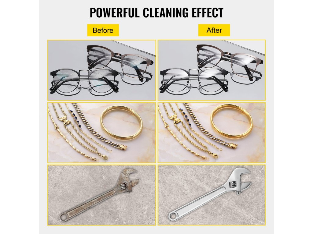 - 【HLOUBKOVÉ ČIŠTĚNÍ 40 KHz】 - Ultrazvuková frekvence 40 kHz umožňuje ultrazvukovému čističi šperků rychle čistit malé předměty se složitou konstrukcí nebo nepravidelnými tvary. Průmyslový měnič vytváří miliony mikroskopických bublin, které účinně čistí vaše věci a zároveň šetří čas a energii.