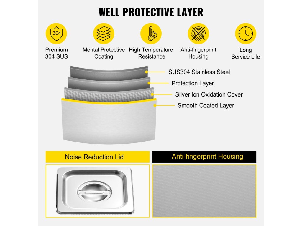 - 【UŽIVATELSKY PŘÍVĚTIVÝ DESIGN】 - Tento komerční ultrazvukový čistič je navržen pro lepší použití zákazníky a vyznačuje se propracovanými detaily. Čtyři protiskluzové gumové nožičky udržují stroj během provozu stabilní. Dvojitá pojistka a několik chladicích otvorů zabraňují nadměrnému proudu a přehřátí.