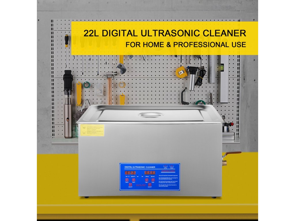 Ultrazvukový čisticí stroj z nerezové oceli, digitální ohřívač s časovačem 22 l / 600 W, ultrazvukový čistič