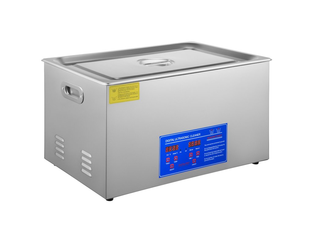 - 【PREMIUM MATERIÁL SUS304】 - Velikost nádrže: 19-22 l; Ultrazvukový výkon: 480 W; Topný výkon: 600 W. Tento ultrazvukový čistič je vyroben z robustní nerezové oceli 304, což zajišťuje bezproblémový únik vody a dlouhou životnost. Kromě toho je k dispozici další košík pro snížení kolize ostrých předmětů s nádrží.