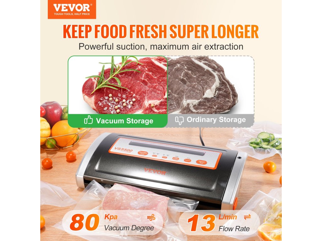 VEVOR Vakuový stroj na utěsnění konzervace potravin Spořič 80 kPa s těsněním