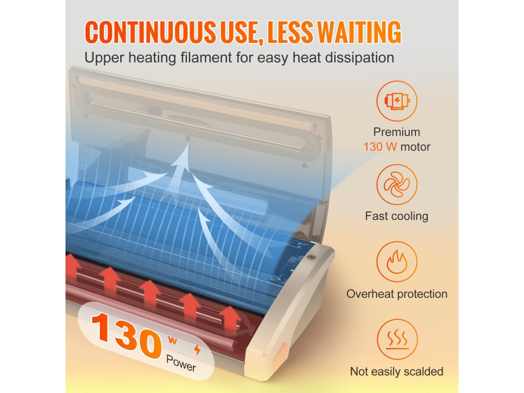 - Méně čekání: Kvalita je tady! Díky svému výkonnému motoru a konstrukci horního topného vlákna poskytuje rychlý a účinný odvod tepla. Navíc s přidanými bezpečnostními opatřeními na ochranu proti přehřátí si můžete užívat klid při používání. Už žádné starosti s popáleninami nebo opařením – jen bez námahy a pokaždé bezpečně utěsnit!