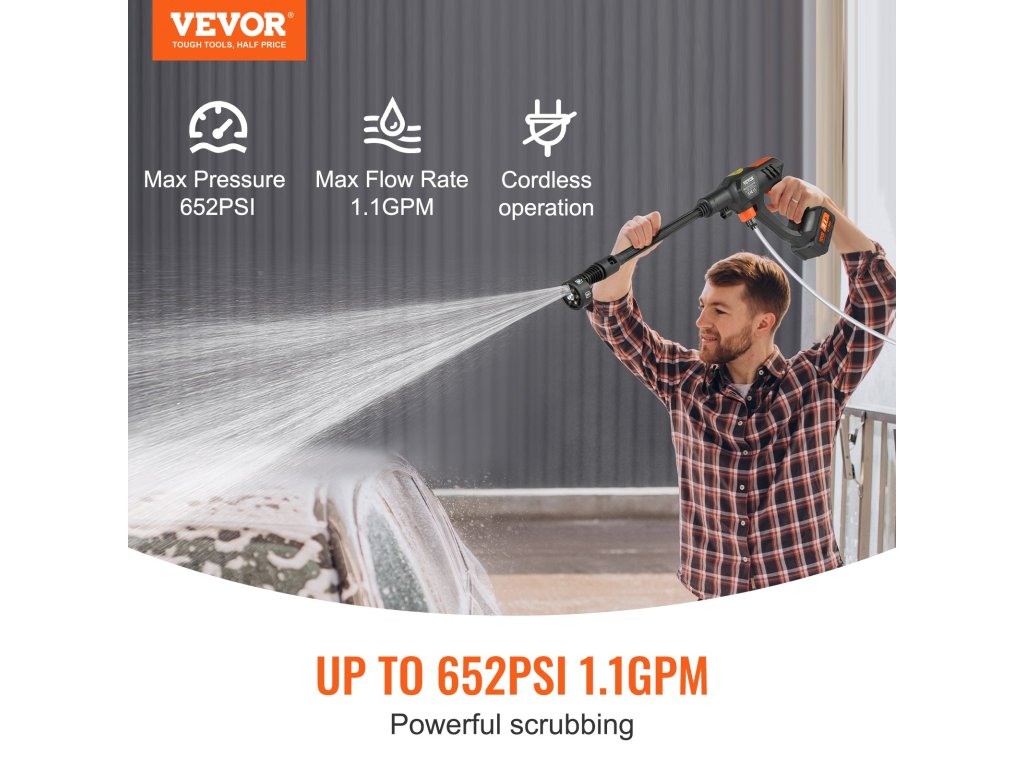 VEVOR Vysokotlaká akumulátorová čistička Přenosná vodní stříkací pistole do auta 652 PSI