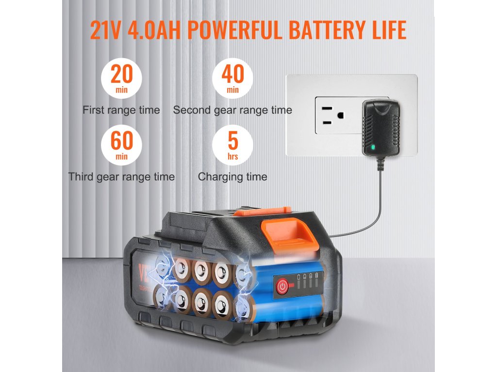 - Dlouhá životnost baterie 60 minut: Tato bezdrátová pračka obsahuje vysokokapacitní baterii 4,0 Ah a rychlou nabíječku s certifikací UL. Životnost baterie se pohybuje mezi 20/40/60 minutami v závislosti na nízkém/středním/vysokém nastavení. Nemusíte se obávat, že se uprostřed čištění vybije baterie, zažijte novou sféru bezproblémového čištění.